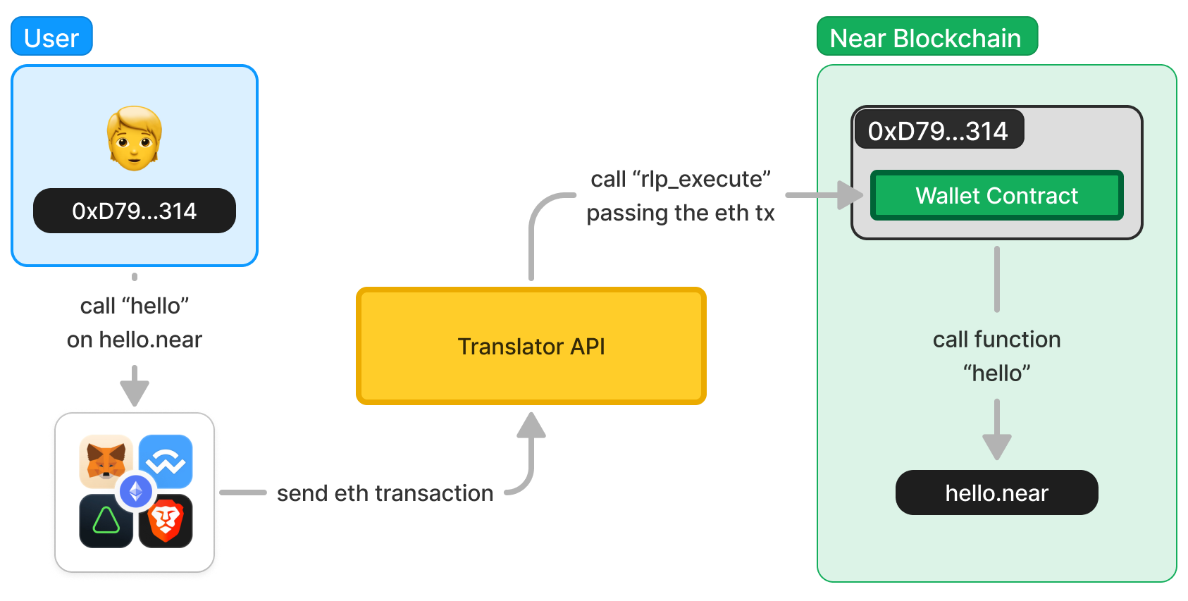 To make this possible, different components interact to translate Ethereum transactions into NEAR transactions, and vice-versa. Let's see how they work!